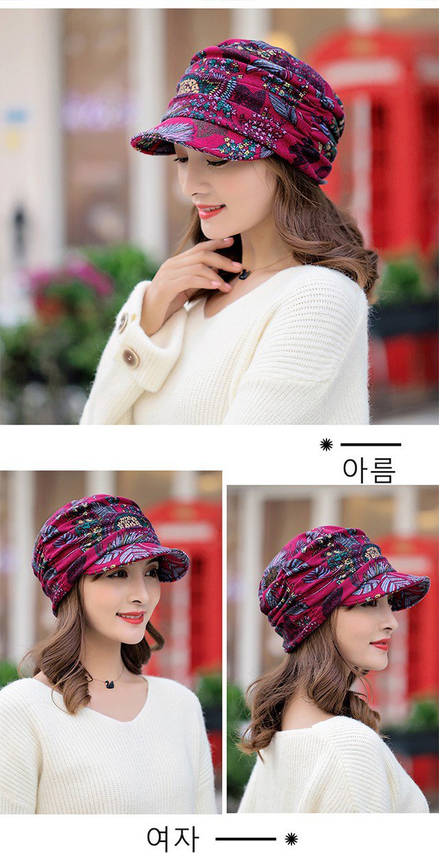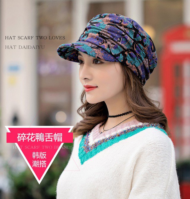 碎花褶皺軟帽沿帽子