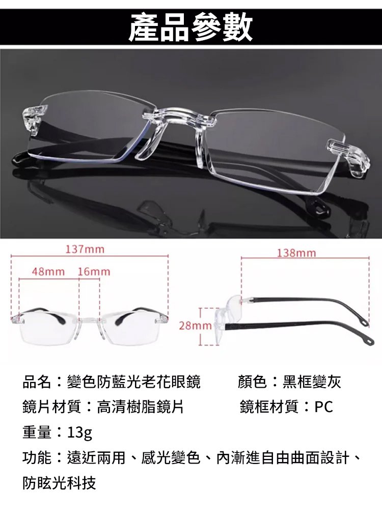 變色防藍光老花眼鏡